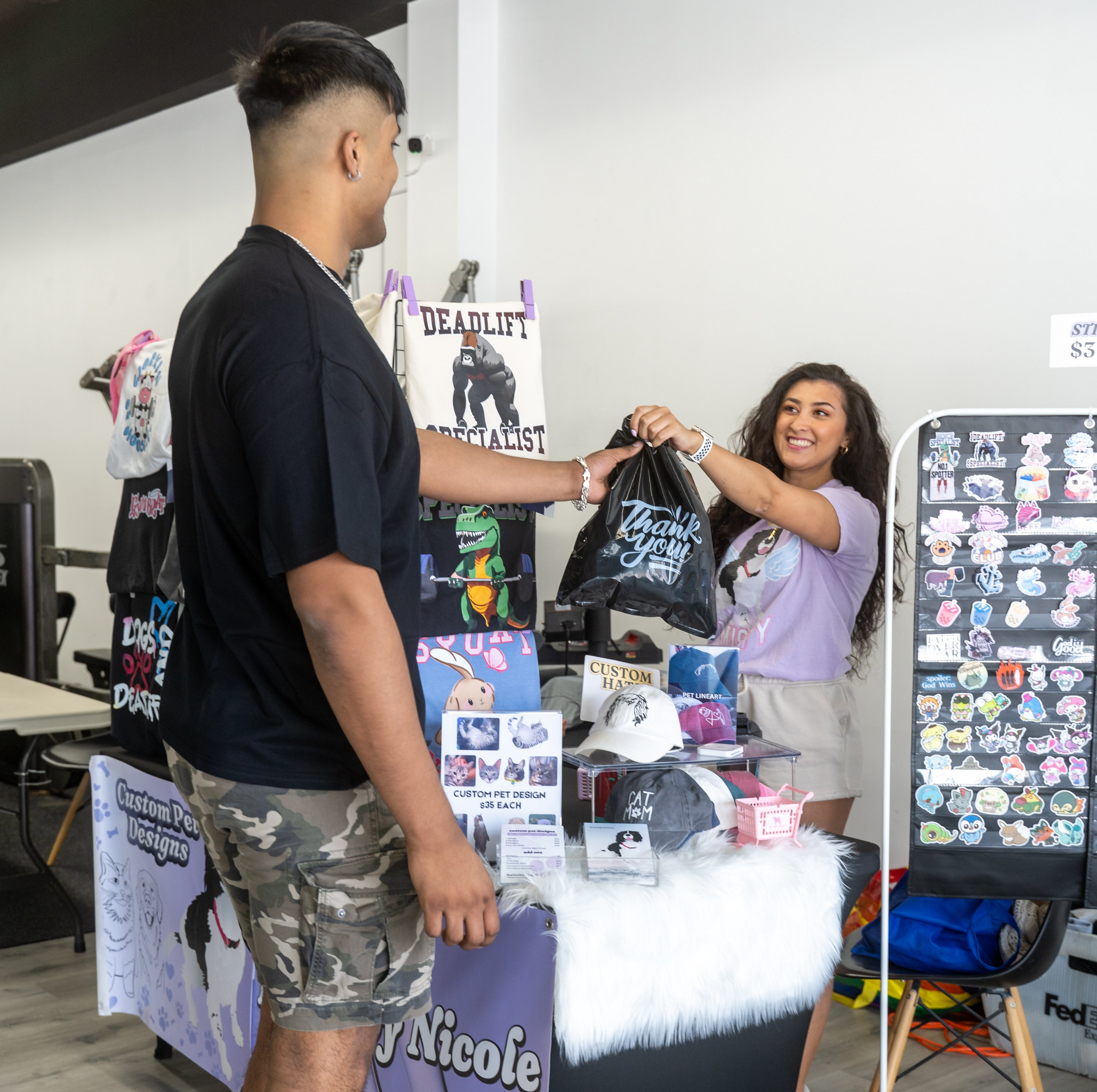 No, they do not work out in-person pop-ups however we usually have some exclusive in person deals and free shipping when ordered at the booth.