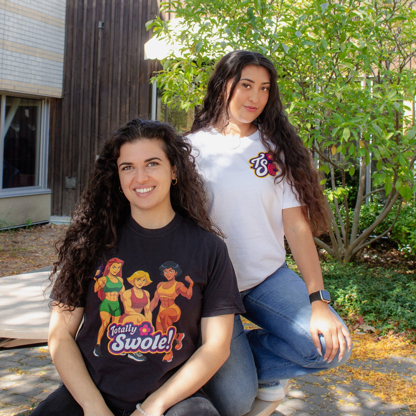 Choose your style: keep it subtle with the bold TS logo on the chest, or go full squad mode with the Totally Swole! trio graphic on the front or back. Available in both black and white.